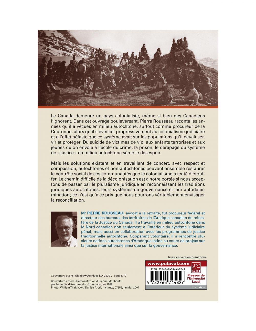 Le Canada demeure un pays colonialiste, même si bien des Canadiens l’ignorent. Dans cet ouvrage bouleversant, Pierre Rousseau raconte les années qu’il a vécues en milieu autochtone, surtout comme procureur de la Couronne, alors qu’il s’éveillait progressivement au colonialisme judiciaire et à l’effet néfaste que ce système avait sur les populations qu’il devait servir et protéger. Du suicide de victimes de viol aux enfants terrorisés et aux jeunes qu’on envoie à l’école du crime, la prison, le dérapage du système de « justice » en milieu autochtone sème le désespoir. Mais les solutions existent et en travaillant de concert, avec respect et compassion, autochtones et non-autochtones peuvent ensemble restaurer le contrôle social de ces communautés que le colonialisme a tenté d’étouffer. Le chemin difficile de la décolonisation est à notre portée si nous acceptons de passer par le pluralisme juridique en reconnaissant les traditions juridiques autochtones, leurs systèmes de gouvernance et leur autodétermination ; ce n’est qu’à ce prix que nous pourrons véritablement envisager la réconciliation.