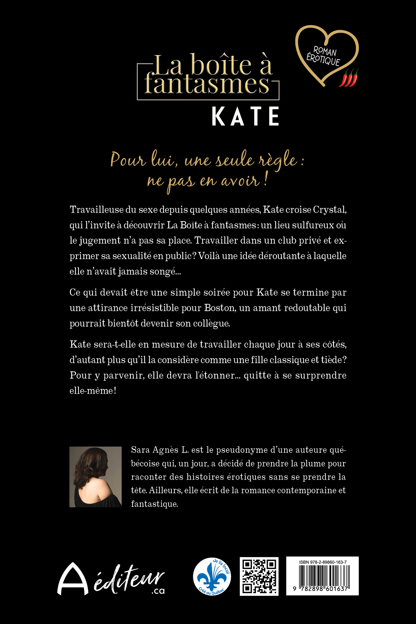 Travailleuse du sexe depuis quelques années, Kate croise Crystal, qui l’invite à découvrir La Boîte à fantasmes: un lieu sulfureux où le jugement n’a pas sa place. Travailler dans un club privé et ex primer sa sexualité en public ? Voilà une idée déroutante à laquelle elle n’avait jamais songé… Ce qui devait être une simple soirée pour Kate se termine par une attirance irrésistible pour Boston, un amant redoutable qui pourrait bientôt devenir son collègue. Kate sera-t-elle en mesure de travailler chaque jour à ses côtés, d’autant plus qu’il la considère comme une fille classique et tiède? Pour y parvenir, elle devra l'étonner… quitte à se surprendre elle-même!