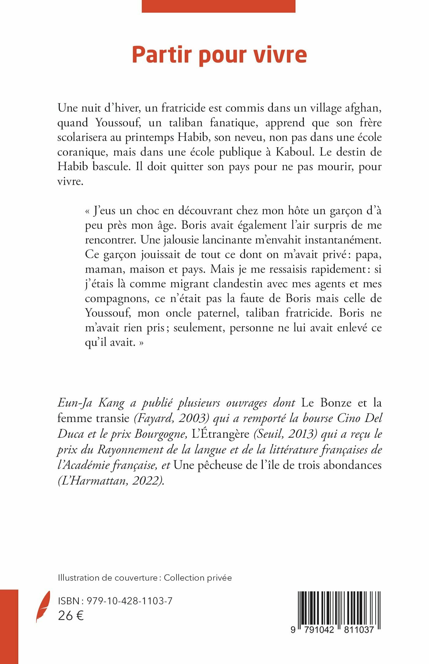 « J’eus un choc en découvrant chez mon hôte un garçon d’à peu près mon âge. Boris avait également l’air surpris de me rencontrer. Une jalousie lancinante m’envahit instantanément. Ce garçon jouissait de tout ce dont on m’avait privé : papa, maman, maison et pays. Mais je me ressaisis rapidement : si j’étais là comme migrant clandestin avec mes agents et mes compagnons, ce n’était pas la faute de Boris mais celle de Youssouf, mon oncle paternel, taliban fratricide. Boris ne m’avait rien pris ; seulement, personne ne lui avait enlevé ce qu’il avait. »