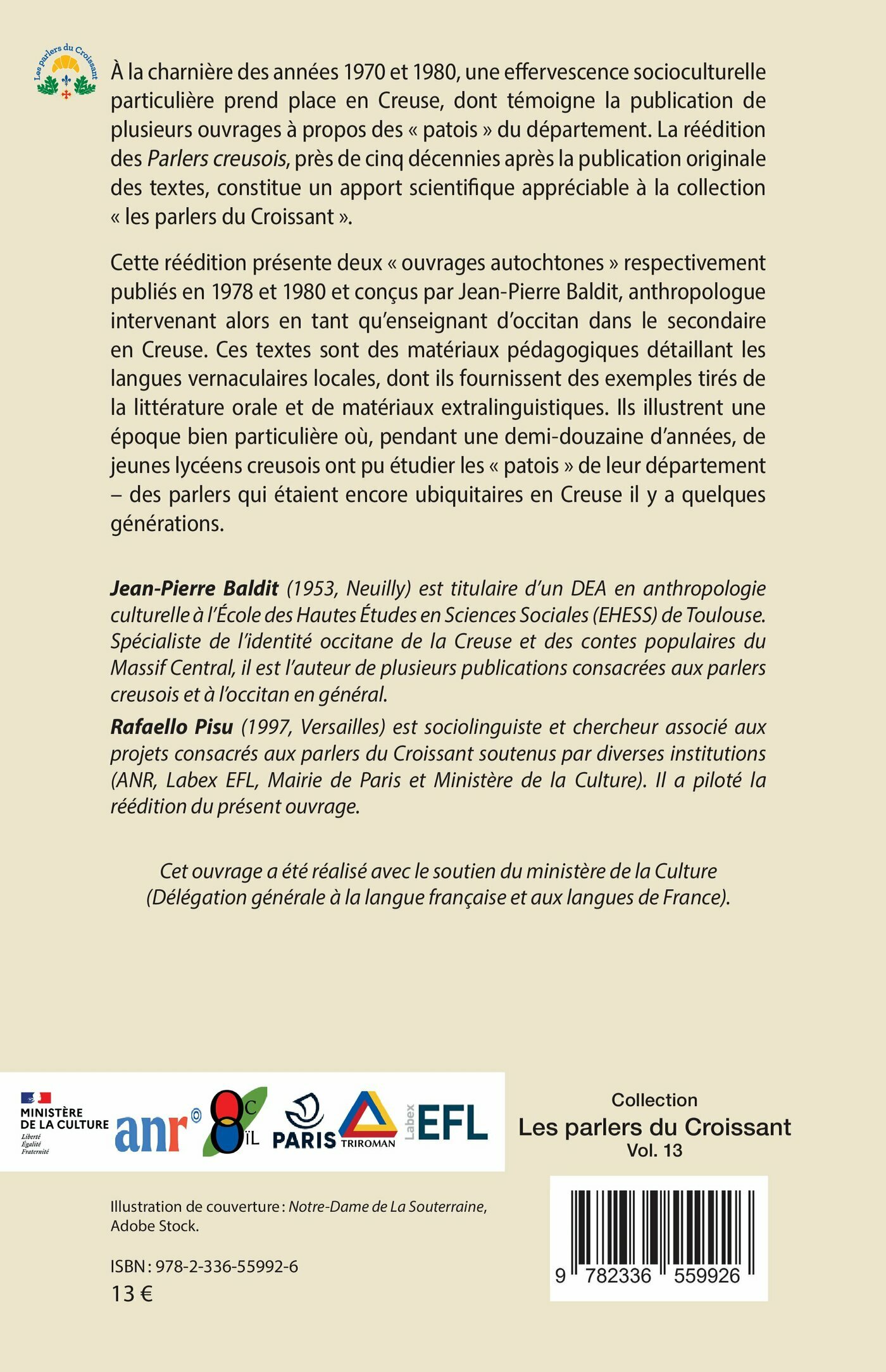 À la charnière des années 1970 et 1980, une effervescence socioculturelle particulière prend place en Creuse, dont témoigne la publication de plusieurs ouvrages à propos des « patois » du département. La réédition des Parlers creusois, près de cinq décennies après la publication originale des textes, constitue un apport scientifique appréciable à la collection « les parlers du Croissant ».