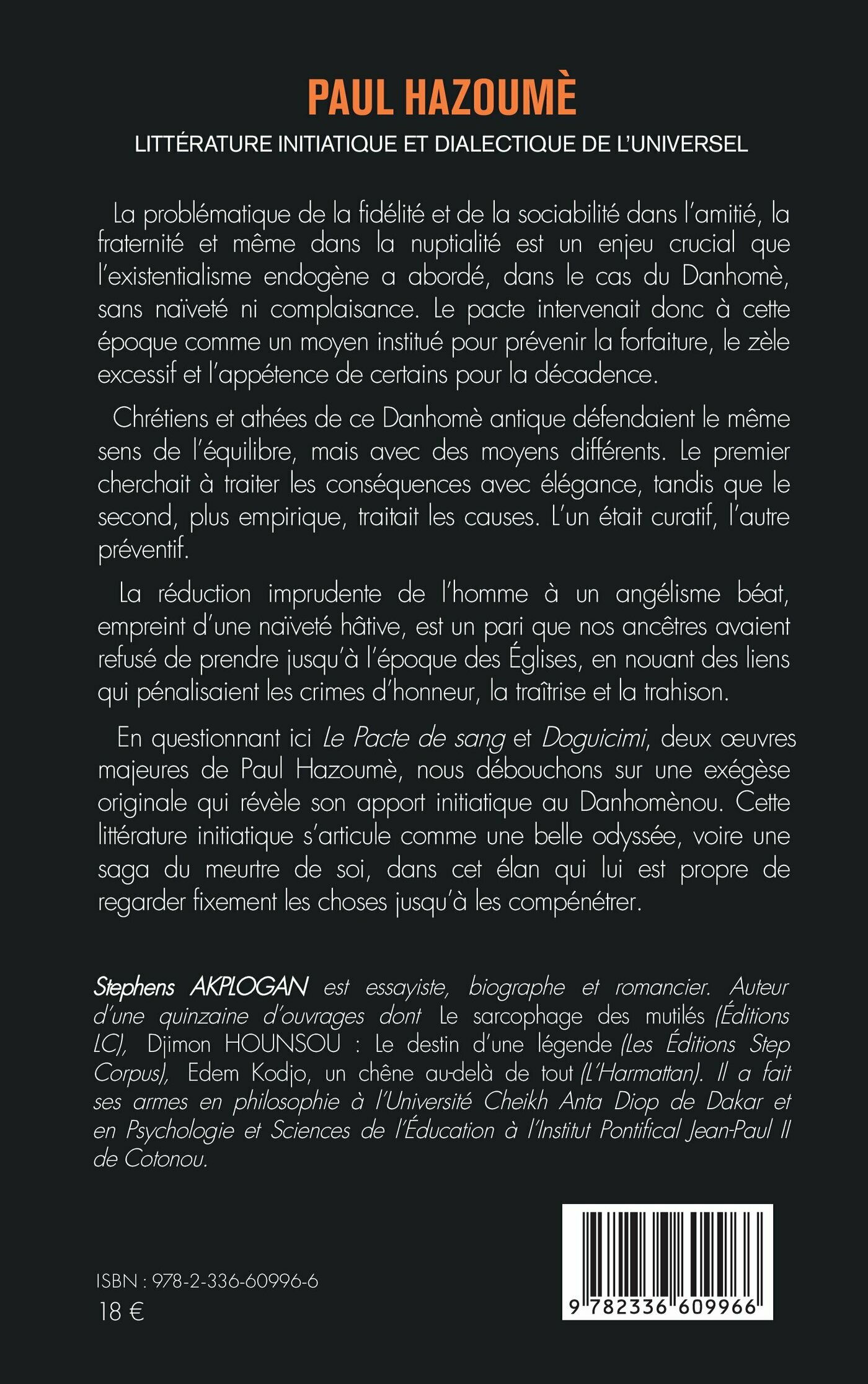 En questionnant ici Le Pacte de sang et Doguicimi, deux œuvres majeures de Paul Hazoumè, nous débouchons sur une exégèse originale qui révèle son apport initiatique au Danhomènou. Cette littérature initiatique s’articule comme une belle odyssée, voire une saga du meurtre de soi, dans cet élan qui lui est propre de regarder fixement les choses jusqu’à les compénétrer.