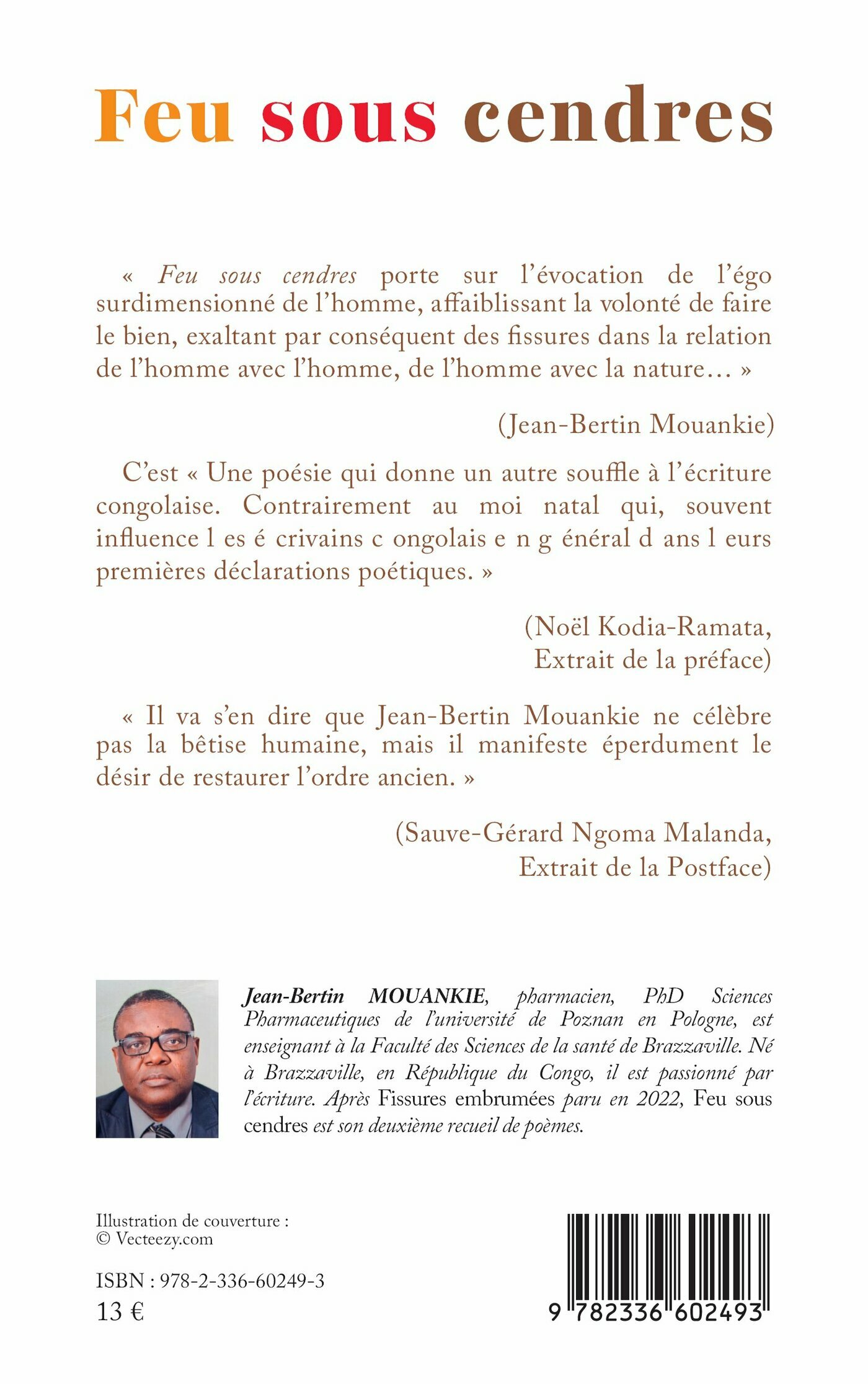 « Feu sous cendres porte sur l’évocation de l’égo surdimensionné de l’homme, affaiblissant la volonté de faire le bien, exaltant par conséquent des fissures dans la relation de l’homme avec l’homme, de l’homme avec la nature… » (Jean Bertin Mouankie)