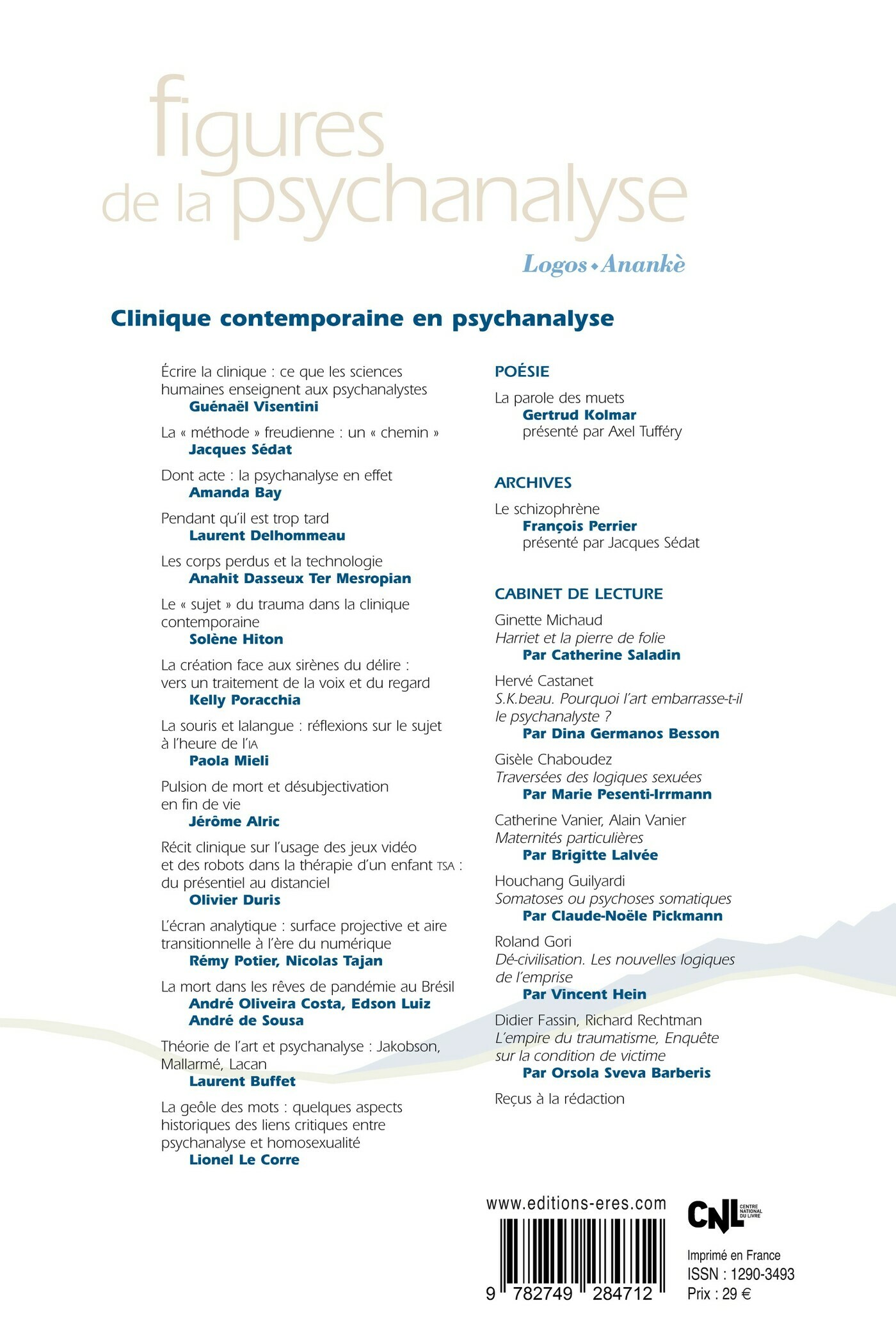 La clinique psychanalytique est notre sol, notre expérience, notre ancrage. Rien de la pensée psychanalytique n'existe sans en être issue, sur un mode ou un autre, de près ou de loin. Nombre de psychanalystes s'attellent à un récit réfléchi de fragments de cette expérience, en son état actuel, dans son contexte, au sein de ce contemporain qui voit l'audience de cette pensée reculer tandis que sa pratique reste un socle fondamental pour beaucoup.