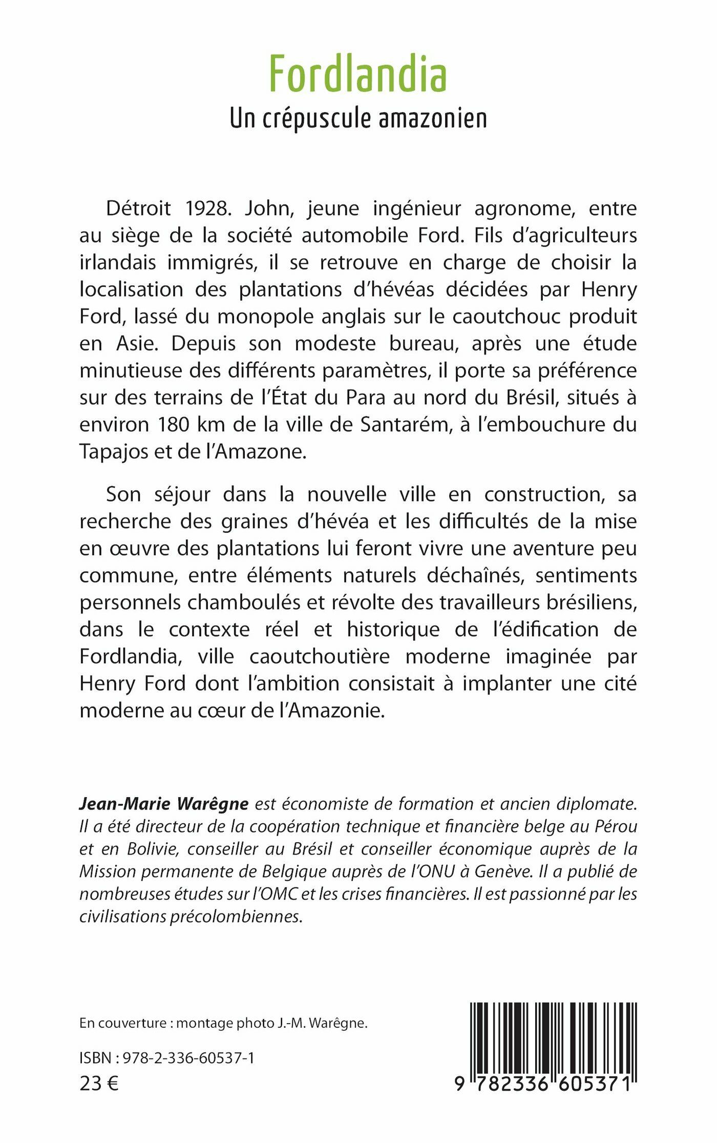 Détroit 1928. John, jeune ingénieur agronome, entre au siège de la société automobile Ford. Fils d’agriculteurs irlandais immigrés, il se retrouve en charge de choisir la localisation des plantations d’hévéas décidées par Henry Ford, lassé du monopole anglais sur le caoutchouc produit en Asie. Depuis son modeste bureau, après une étude minutieuse des différents paramètres, il porte sa préférence sur des terrains de l’État du Para au nord du Brésil, situés à environ 180 km de la ville de Santarém, à l’embouchure du Tapajos et de l’Amazone.