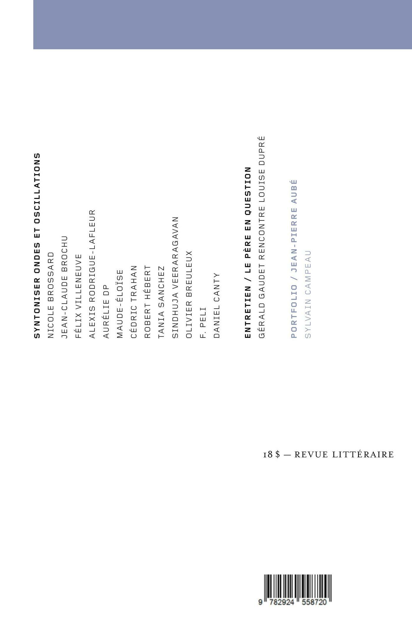 Gérald Gaudet, Elise Turcotte, Gilles Daigneault, Martine Audet, Paul Chanel Malenfant, Louise Bail, Samuel Bidaud, Christophe Condello, Félix Racine, Laure Gisbert, Jean-François Bernier, Maryse Pellerin, Ivan Salamanca, F. Peli, Laure Mi Hyun Croset, Dany Boudreault, Maxime Carbonneau, Laurence Dauphinais, Bertrand Gervais, Karoline Georges