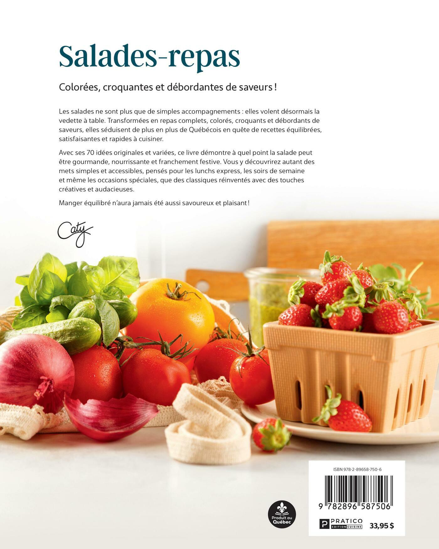 Les salades ne sont plus que de simples accompagnements : elles volent désormais la vedette à table. Transformées en repas complets, colorés, croquants et débordants de saveurs, elles séduisent de plus en plus de Québécois en quête de recettes équilibrées, satisfaisantes et rapides à cuisiner.Avec ses 70 idées originales et variées, ce livre démontre à quel point la salade peut être gourmande, nourrissante et franchement festive. Vous y découvrirez autant des mets simples et accessibles, pensés pour les lunchs express, les soirs de semaine et même les occasions spéciales, que des classiques réinventés avec des touches créatives et audacieuses.Manger équilibré n’aura jamais été aussi savoureux et plaisant !