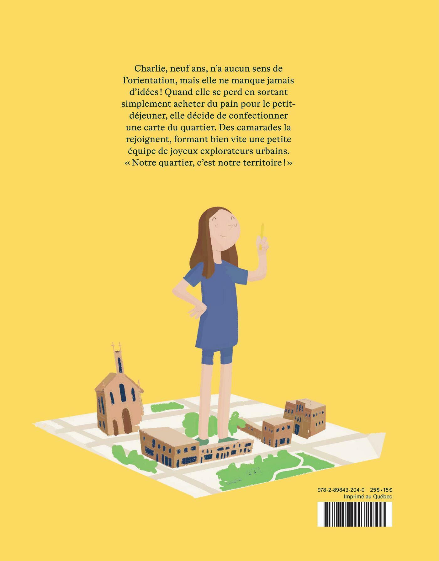 Charlie a neuf ans et un sens de l’orientation particulièrement… désastreux. Un matin, sa maman lui demande de sortir aller chercher du pain pour le petit déjeuner, à quelques pas de la maison. Distraite, elle prend le mauvais chemin en sortant de la boulangerie. Elle se perd momentanément… mais suffisamment pour décider que, voilà, c’est assez : elle doit prendre les grands moyens pour s’orienter dans son propre quartier! Elle entreprendra la confection d’une carte du quartier la plus complète qui soit… en commettant des erreurs d’orientation, évidemment! Mais elle apprendra, corrigera, peaufinera. Et rapidement, ce sont quelques camarades de l’école qui se joindront à l’aventure. En partageant leurs connaissances, le quartier n’aura plus de secrets pour personne! Au fil de l’histoire de Charlie, on découvre le b.a-ba de la cartographie et les outils pour s’orienter. La carte de mon quartier raconte toute l’importance pour les enfants de s’approprier leur environnement immédiat, leurs trajets quotidiens vers l’école, la maison des ami·es, le parc, etc. Une ode à l’autonomie réfléchie, sans trop s’égarer!