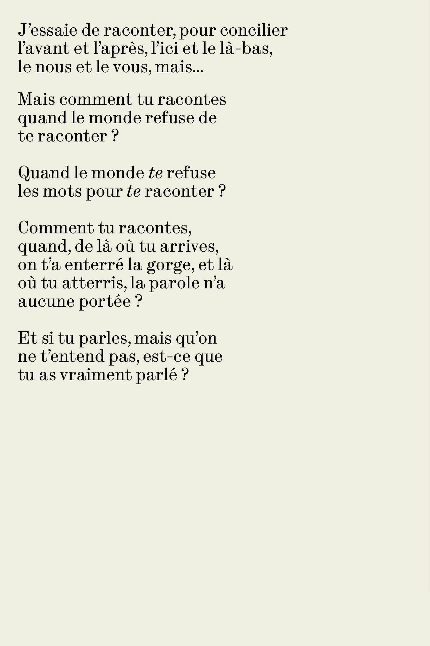 Leslie Piché, Aimée Dandois, Danielle Shelton, Françoise Belu, Nancy R. Lange, Francine Allard, Denis-Martin Chabot, Claude Drouin, Diane Landry, R. A. Warren, Louis-Philippe Hébert, Désirée Szucsany, Daniel Leblanc-Poirier, Daniel Paradis, Sylvie Caissie, Hoda Adra, France Bonneau, Gislaine Roguet, Jonathan Boulianne, Félix Venne-Deshaies, Stéphane Larivière, Maxianne Berger, Mike Montreuil, Luce Pelletier, Monique Pagé, Céline Landry, Diane Mainville, Laurent Berthiaume, Monique Joachim, Élisabeth Recurt