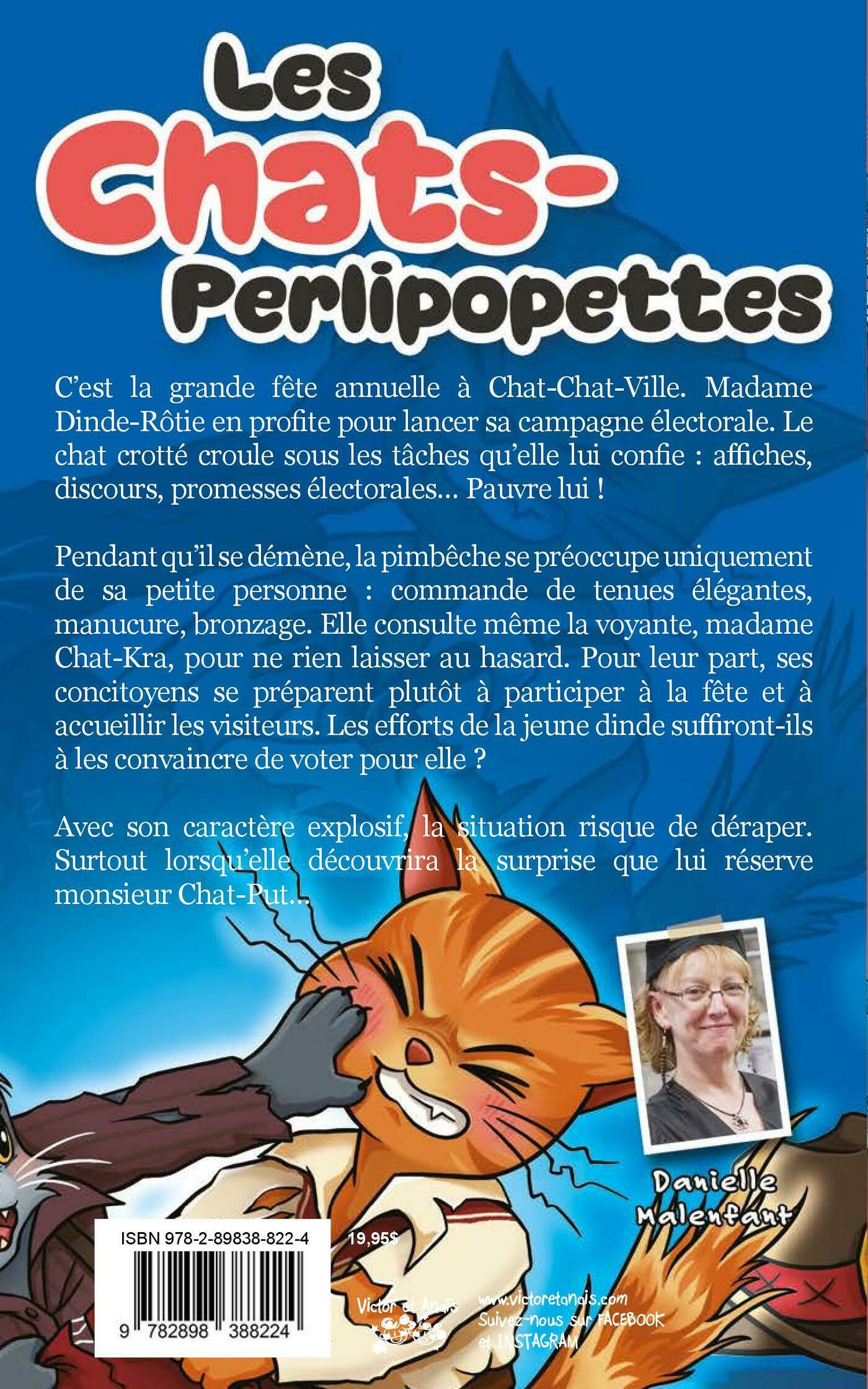 C’est la grande fête annuelle à Chat-Chat-Ville. Madame Dinde-Rôtie en profite pour lancer sa campagne électorale. Le chat crotté croule sous les tâches qu’elle lui confie : affiches, discours, promesses électorales… Pauvre lui! Pendant qu’il se démène, la pimbêche se préoccupe uniquement de sa petite personne : commande de tenues élégantes, manucure, bronzage. Elle consulte même la voyante, madame Chat-Kra, pour ne rien laisser au hasard. Pour leur part, ses concitoyens se préparent plutôt à participer à la fête et à accueillir les visiteurs. Les efforts de la jeune dinde suffiront-ils à les convaincre de voter pour elle? Avec son caractère explosif, la situation risque de déraper. Surtout lorsqu’elle découvrira la surprise que lui réserve monsieur Chat-Put…